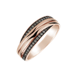 A charming 14ct rose and black gold ring with brown diamonds exemplifies elegance in its purest form. Its high-quality brown diamonds contrast with the black gold, adding a subtle yet distinctive sparkle that radiates confidence and beauty. The jewelry is part of the Essential collection.