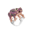 Crafted in 18ct white, rose and black gold, this beautiful ring is a magnificent piece of jewelery art. Its brown diamond, pink sapphire and garnet green create a unique combination of color and sparkle. This jewel is a symbol of luxury and taste. The jewelry is part of the Animals collection.