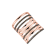 This 14ct rose and black gold ring with brown diamonds is the ultimate piece of art. Its design is thoughtful and so extremely elegant. The diamonds on this ring create a sparkling play of light that enchants everyone who looks at them. The jewelry is part of the Aphrodité collection.