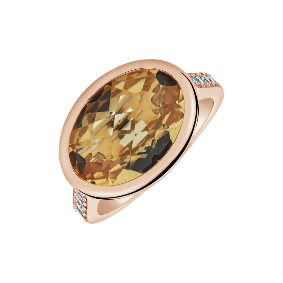 This 14ct rose gold diamond and citrine ring is the perfect accessory for any occasion. Its minimalist yet elegant design will enhance the beauty of anyone who wears it. The jewelry is part of the Fantasy collection.