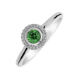A ring made of 14ct white gold, decorated with diamonds and a green garnet, is a symbol of unique taste and timeless charm. Its design is as unique as you who wear it. The jewelry is part of the Luxury Classic collection.