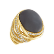 A ring in 18ct yellow gold with diamonds and a gray moonstone, boasting its perfection and carefully selected stones, it is a symbolic seal of eternal elegance. The jewelry is part of the Blossoms collection.