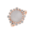 An 18ct rose gold diamond and white moonstone ring celebrates timeless beauty. Its subtle sparkle of diamonds accentuates femininity and sophistication. The jewelry is part of the Blossoms collection.