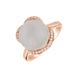 The 18ct rose gold diamond and white moonstone ring is like the treasure of a lost kingdom. Its glittering diamonds and rare white moonstone symbolize luxury, power and alluring beauty. The jewelry is part of the Blossoms collection.