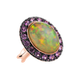 Ring 18ct rose and black gold with white opal and pink sapphire like a poet who tells a story of beauty and elegance. Its beautiful design is like a sonnet about success and perfection. The jewelry is part of the Blossoms collection.