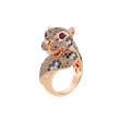 The 18ct rose gold ring with black and brown diamonds and a ruby is like the treasure of a lost kingdom. Its glittering diamonds and rare rubies are like the most valuable jewels, symbolizing luxury, power and alluring beauty. The jewelry is part of the Animals collection.