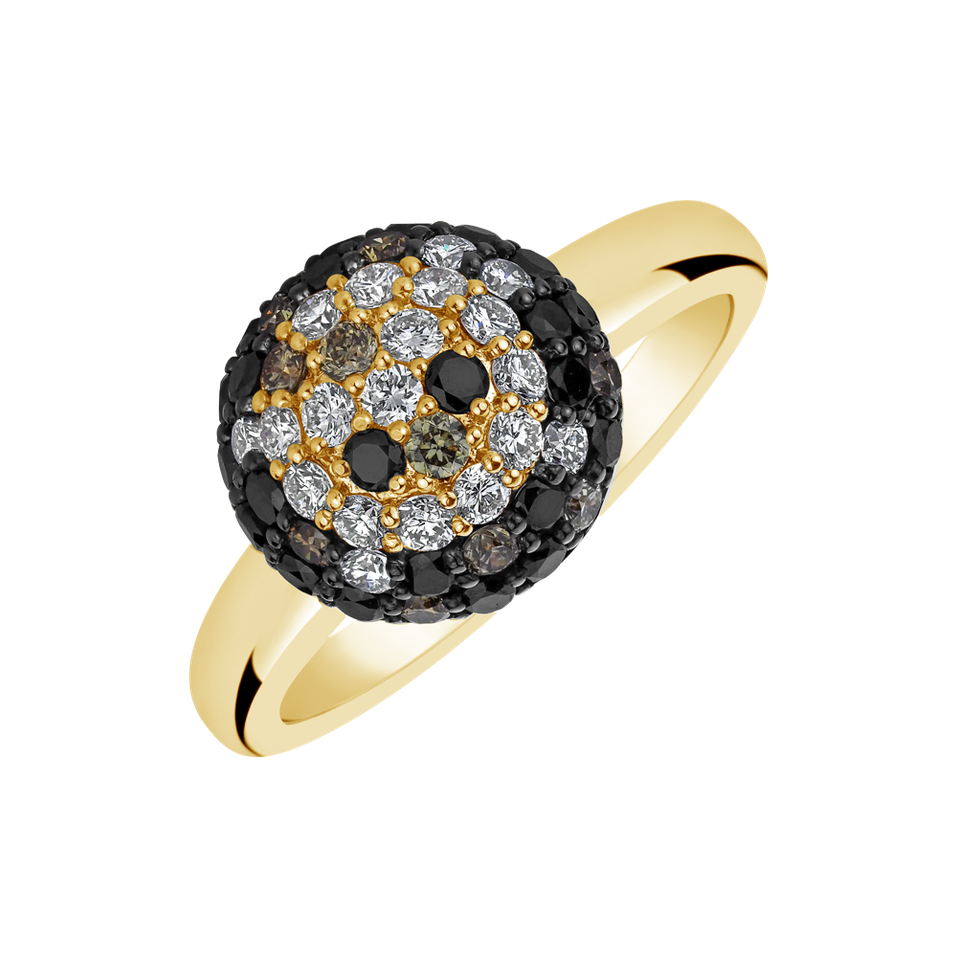 A 14ct yellow and black gold ring with brown and black diamonds that is like a symphony of light and elegance. Its exquisite design presents a path to success, full of beauty and soft tones. The jewelry is part of the Colours of Autumn collection.