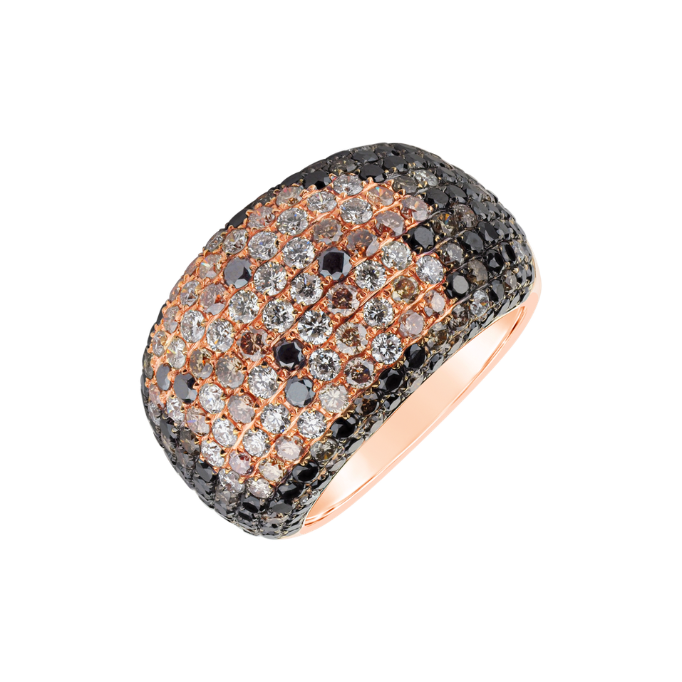 Ring with white, brown and black diamonds Twilight Dreamer